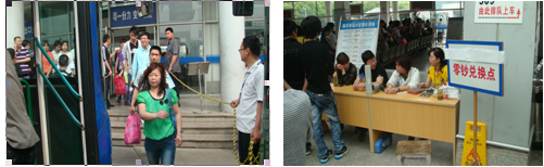 ?? 乘客有序上車(chē)???????????????????????????????????? 忙碌的服務(wù)臺(tái)