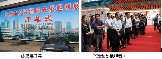 ??? 本次展覽形式多樣、內(nèi)容豐富。一進(jìn)大門,大型LED顯示屏滾動(dòng)播放著《余杭反腐倡廉教育片》電視片,一下子就把人們吸引到了廉潔正氣的氛圍當(dāng)中。進(jìn)入主展區(qū),第一章“工作成果篇”展示的是杭州市近幾年來反腐倡廉的工作成果。隨著講解員抑揚(yáng)頓挫的講解,一組鮮明的數(shù)字對(duì)比圖在參觀者腦中活躍開來,一幅幅生動(dòng)的照片讓參觀者產(chǎn)生了濃厚的興趣。而我區(qū)也在近五年中,著力打造“勤廉余杭”做著不懈的努力:2009年6月,區(qū)長(zhǎng)姜軍在“陽光行動(dòng)”走遍浙江大型直播活動(dòng)中闡述我區(qū)以“勤政、廉政、善政”,增強(qiáng)機(jī)關(guān)干部的學(xué)習(xí)力、執(zhí)行力、創(chuàng)新力;“效能亮劍”進(jìn)一步提升機(jī)關(guān)干部的工作作風(fēng);整潔寬敞的“市民之家”已有36個(gè)部門400余項(xiàng)行政審批和便民服務(wù)事項(xiàng)在這里辦理;黨風(fēng)廉政建設(shè)和反腐敗工作新聞發(fā)布,讓我們深深感到到余杭區(qū)反腐倡廉和重大案件查處決心;紀(jì)檢監(jiān)察系統(tǒng)導(dǎo)入ISO9000質(zhì)量管理體系工作,助推反腐倡廉工作深入發(fā)展。余杭在大力推進(jìn)體制改革和制度創(chuàng)新,加強(qiáng)對(duì)黨員干部的教育、管理和監(jiān)督作出了極大的努力,從源頭上防治腐敗,成效顯著。