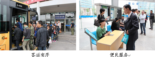 ? 長假前夕,公司專門出臺國慶客運方案,召開動員大會,統(tǒng)籌安排、布置任務、落實責任,各部門緊密配合、協(xié)同作戰(zhàn)。公司領(lǐng)導班子成員和相關(guān)職能部門的管理人員放棄休假,一大早便深入一線,加強現(xiàn)場協(xié)調(diào)指揮和管理??瓦\部合理配車配班、調(diào)整班型結(jié)構(gòu)、增加運能、推行便民服務等,為廣大乘客提供安全、便捷、舒適的公交優(yōu)質(zhì)服務。根據(jù)客流需求,計劃安排日最高配車988輛,為去年同期的105.22%,日最高配班1321車班,為去年同期的108.01%。機務部聯(lián)系修理廠節(jié)前做好所有車輛的安全例檢工作,保證車輛安全系統(tǒng)及通風設(shè)施、空調(diào)等設(shè)備完好有效。節(jié)日期間修理廠還加強了早晚的修理力量,在各主要站點安排了駐站技工,確保營運一線出足車、出好車。后勤部做好節(jié)日期間的后勤保障工作,保障餐飲衛(wèi)生,落實各站點的用餐供應充足,并根據(jù)實際情況送點心、客飯、茶水到路線,加強對車輛、場地、站點的保潔。保衛(wèi)部要切實加強場區(qū)、站點的消防安全和防盜工作,嚴肅督查、值班制度,對發(fā)現(xiàn)的安全隱患要一查到底并完成督促整改,確保節(jié)日客運安全。公共自行車管理部對節(jié)日期間大型商場及繁忙服務點增派服務人員,對車輛和服務點進行衛(wèi)生及安全檢查。并為響應國家節(jié)能減排的號召,公司在的761、761區(qū)間、763、772、769五條線路投入最新購置的40輛混合動力大客車,獲得了余杭市民的好評,成為大街小巷的一道亮麗的風景線。