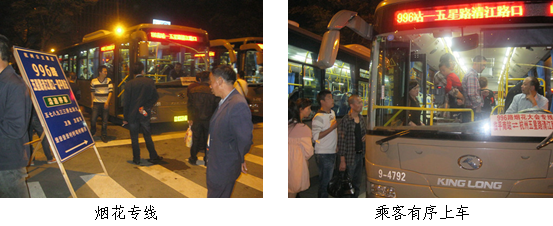 根據(jù)“按線運(yùn)送、就近上下、定點(diǎn)蓄車(chē)、多向疏散、延時(shí)服務(wù)、安全有序”的客運(yùn)原則,我司成立以羅新林總經(jīng)理為組長(zhǎng)的領(lǐng)導(dǎo)小組,加強(qiáng)領(lǐng)導(dǎo)、層層落實(shí)。根據(jù)集團(tuán)的統(tǒng)一部署,我司開(kāi)通996江北專線一條,以五星路為蓄車(chē)點(diǎn),實(shí)時(shí)監(jiān)控蓄車(chē)情況,并安排護(hù)站人員進(jìn)行現(xiàn)場(chǎng)管理,維持好乘客秩序。該專線共配備車(chē)輛40輛,安全、順利地完成乘客輸送3500余人次。其他常規(guī)線路延長(zhǎng)服務(wù)時(shí)間6條,并在509、506、342等11條線路增加夜班車(chē)53輛,支援專線,提供充足的運(yùn)力?;顒?dòng)前嚴(yán)格審核煙花大會(huì)司機(jī)名單,制定安全行車(chē)示意圖,加強(qiáng)監(jiān)控室管理人員力量,DIMS智能調(diào)度網(wǎng)對(duì)專線進(jìn)行重點(diǎn)監(jiān)控。下午三點(diǎn),各管理點(diǎn)工作人員準(zhǔn)時(shí)到崗,力壓一線,加強(qiáng)現(xiàn)場(chǎng)管理,及時(shí)應(yīng)對(duì)突發(fā)情況。同時(shí),為方便市民乘坐,我司還特別安排6名零鈔兌換人員現(xiàn)場(chǎng)兌換,為乘客提供便利。此外,本次客運(yùn)任務(wù)的順利完成,也離不開(kāi)各部門(mén)、車(chē)隊(duì)的相互配合和員工的努力工作,如:信訪熱線接待工作人員為了方便市民查詢線路,及時(shí)接受信訪信息,一直工作到晚上十點(diǎn);監(jiān)控室人員在全部專線車(chē)進(jìn)場(chǎng)后才離開(kāi)崗位。車(chē)輛機(jī)務(wù)實(shí)施駐點(diǎn)搶修定點(diǎn)定人,并安排“兩技一電”專修工,確保故障車(chē)輛及時(shí)修復(fù)和拖離現(xiàn)場(chǎng),杜絕因車(chē)輛故障引起的道路阻塞;加強(qiáng)回場(chǎng)流程各崗位力量,減少收銀、加油、洗車(chē)、停庫(kù)等環(huán)節(jié)的時(shí)間;做好晚飯、飲用水、點(diǎn)心的供應(yīng)和保障。