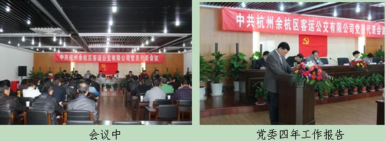 在雄壯的國歌聲中,會議正式開始。公司黨委委員黃建國同志為會議致開幕詞。隨后,公司黨委書記代表上屆黨委班子作黨委工作報告。報告從完成公交一體化任務,主營業(yè)務穩(wěn)步提升,加強安全生產管理,場站后勤保障扎實穩(wěn)固,文明窗口創(chuàng)建成果顯著,企業(yè)內部建設成效明顯,全面加強黨組織建設,營造企業(yè)清風正氣,群團關愛工作凝聚人心九大方面對公司黨委過去四年的主要工作進行回顧,充分展示了四年來通過全體黨員干部和員工的共同努力,公司從上無一片瓦,下無一寸地的零起點開始,經過四個風雨春秋的奮力拼搏,至今擁有2921名員工,1281輛營運車,并于2011年9月正式入住新停?;兀蔀槿珔^(qū)最大的國有企業(yè)。并審時度勢,確定今后四年黨委發(fā)展的指導思想為:貫徹黨的十七屆五中、六中,黨的十八大,區(qū)委十三屆會議精神,以鄧小平理論、“三個代表”重要思想為指導,深入開展科學發(fā)展觀,在市、區(qū)兩級政府的關心指導下,在市公交集團和區(qū)交通集團的領導下,全面落實“十二五規(guī)劃”戰(zhàn)略,加快企業(yè)經濟轉型升級,認真履行政府指令,完成股東會下達的目標任務。在公司黨政班子的帶領下,在全體黨員干部、員工的共同努力下,發(fā)揮黨組織的戰(zhàn)斗堡壘作用和黨員的先鋒模范作用,全面落實公交優(yōu)先發(fā)展戰(zhàn)略,遵循“公交優(yōu)先,公交必須優(yōu)秀”的經營理念,增強實力、提升服務、完善組織、凝聚人心,為余杭公交三個文明建設不斷努力。明確今后四年奮斗目標,黨委要積極配合行政,圍繞“余杭公交十二五規(guī)劃”,落實公交優(yōu)秀戰(zhàn)略,壯大企業(yè)實力、實現三大營運指標持續(xù)增長,用戰(zhàn)略的眼光繪制企業(yè)發(fā)展藍圖,用奉獻的精神提升公交服務品質,充分發(fā)揮黨員干部的先鋒模范作用,用優(yōu)異的成績迎接黨的十八大勝利召開。接著由黨委委員、梁碧鴻同志上屆黨委《黨費收繳報告》,在場代表一致審議通過以上兩份報告。