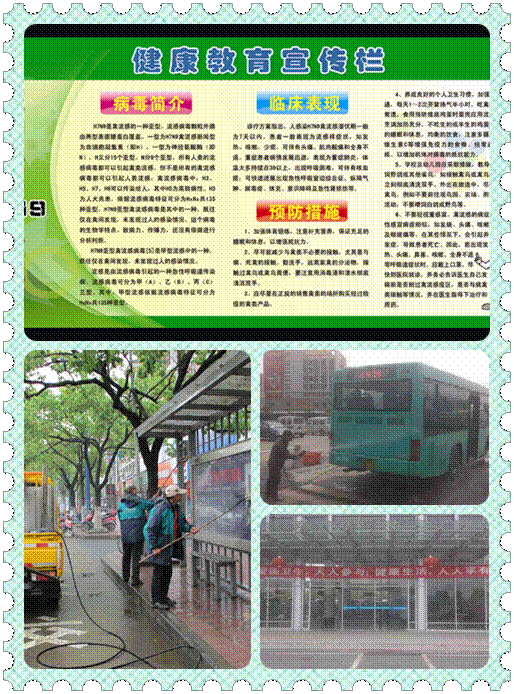 今年四月是全國第二十五個(gè)愛國衛(wèi)生月。為深入貫徹《浙江省愛國衛(wèi)生促進(jìn)條例》,鞏固和發(fā)展國家衛(wèi)生城市先進(jìn)城區(qū)創(chuàng)建成果,深入推進(jìn)“健康余杭”建設(shè),根據(jù)上級部門的文件精神,公司積極開展以“愛國衛(wèi)生,人人參與,健康生活,人人享有”為主題的愛國衛(wèi)生月活動(dòng),此次活動(dòng)共發(fā)放《關(guān)于第25個(gè)愛國衛(wèi)生月活動(dòng)倡議書》100余份、懸掛宣傳橫幅6條、制作預(yù)防禽流感宣板10塊,并對各場區(qū)、站房、候車亭、車輛等進(jìn)了衛(wèi)生大掃除,對各片區(qū)的食堂進(jìn)行了除四害。